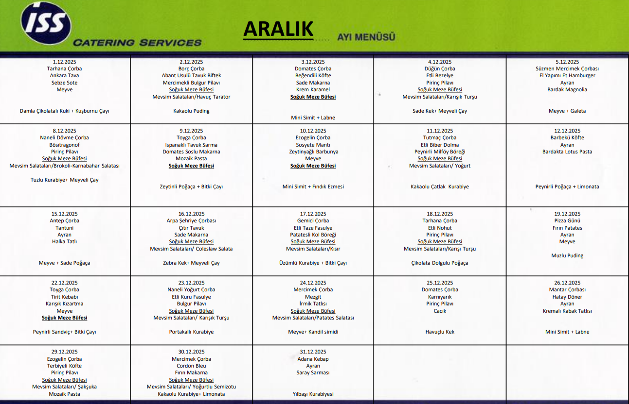 Aylık Yemek Listesi